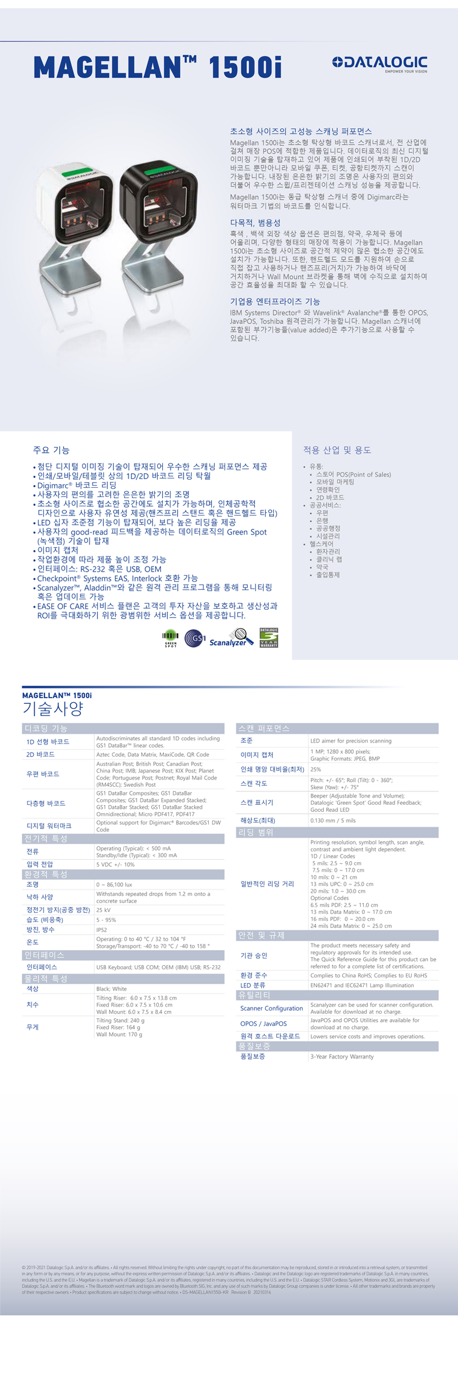 µ¥ÀÌÅÍ·ÎÁ÷ÀÇ Magellan 1500iÀº °í¼º´ÉÀÇ À̹ÌÁö ÇÁ·¹Á¨Å×ÀÌ¼Ç ½ºÄ³³Ê·Î¼ À¯Åë¸ÅÀåÀÇ POS, ÇコÄÉ¾î ¾à±¹, °æ°ø¾÷, Ű¿À½ºÅ©, ¼¿ÇÁüũ¾Æ¿ô µîÀÇ »ê¾÷ Àü¹Ý¿¡ ÀûÇÕÇÑ Á¦Ç°ÀÔ´Ï´Ù.