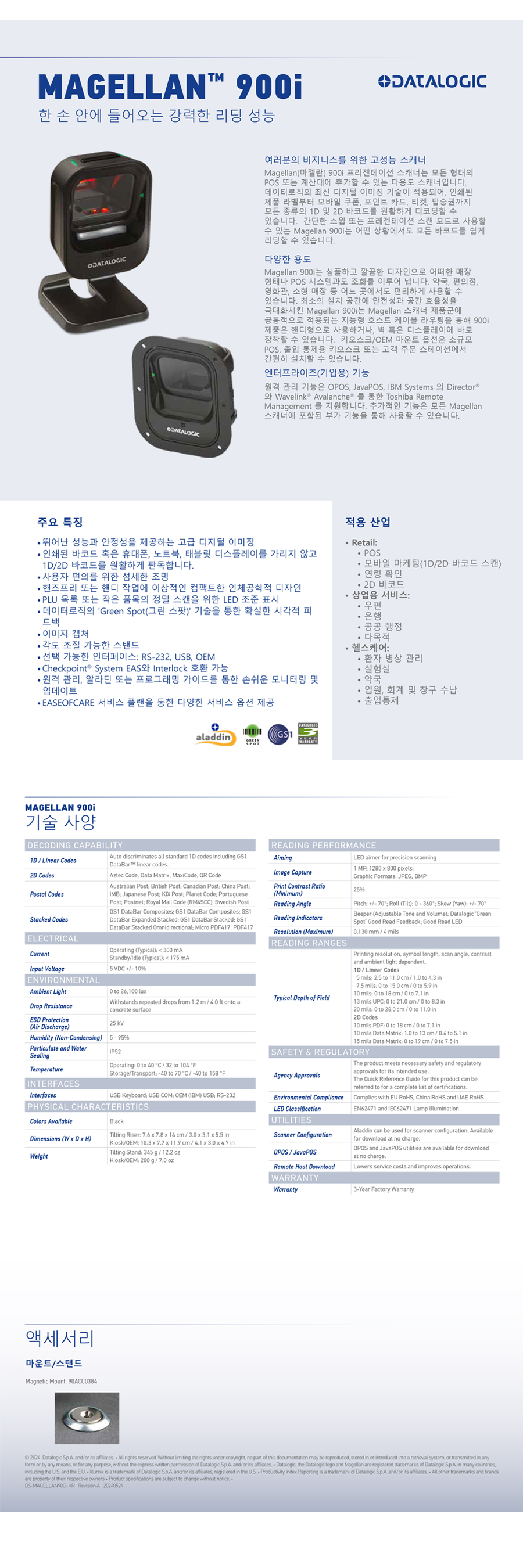 µ¥ÀÌÅÍ·ÎÁ÷Àº ´Ù³â °£ÀÇ Çõ½ÅÀ» ¹ÙÅÁÀ¸·Î À̹Ì¡ ÇÁ·¹Á¨Å×ÀÌ¼Ç ¹ÙÄÚµå ½ºÄ³³Ê Á¦Ç°±ºÀÇ ÃֽйöÀüÀÎ Magellan(¸¶Á©¶õ) 900i ½ºÄ³³Ê¸¦ Ãâ½ÃÇÏ¿´½À´Ï´Ù. À̹Ì¡ ÇÁ·¹Á¨Å×ÀÌ¼Ç ½ºÄ³³Ê ºÐ¾ß¿¡¼ 15³â°£ ½×¾Æ¿Â °æÇèÀ» ¹ÙÅÁÀ¸·Î ¼³°èµÈ Magellan 900i´Â ÄÄÆÑÆ®ÇÑ µðÀÚÀΰú °·ÂÇÑ ¼º´ÉÀ» Á¦°øÇÏ¸ç ¸ð¹ÙÀÏ µð½ºÇ÷¹ÀÌÀÇ 1D ¹× 2D ¹ÙÄڵ带 ½Å¼ÓÇÏ°Ô ÆÇµ¶ÇÒ ¼ö ÀÖ½À´Ï´Ù.