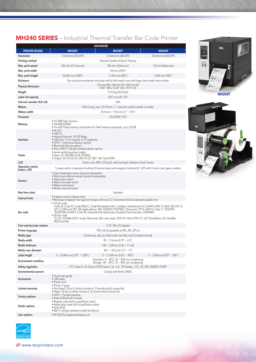 MH241T ¡¤ MH341T ¡¤ MH641T   |   TSC Industrial Printer