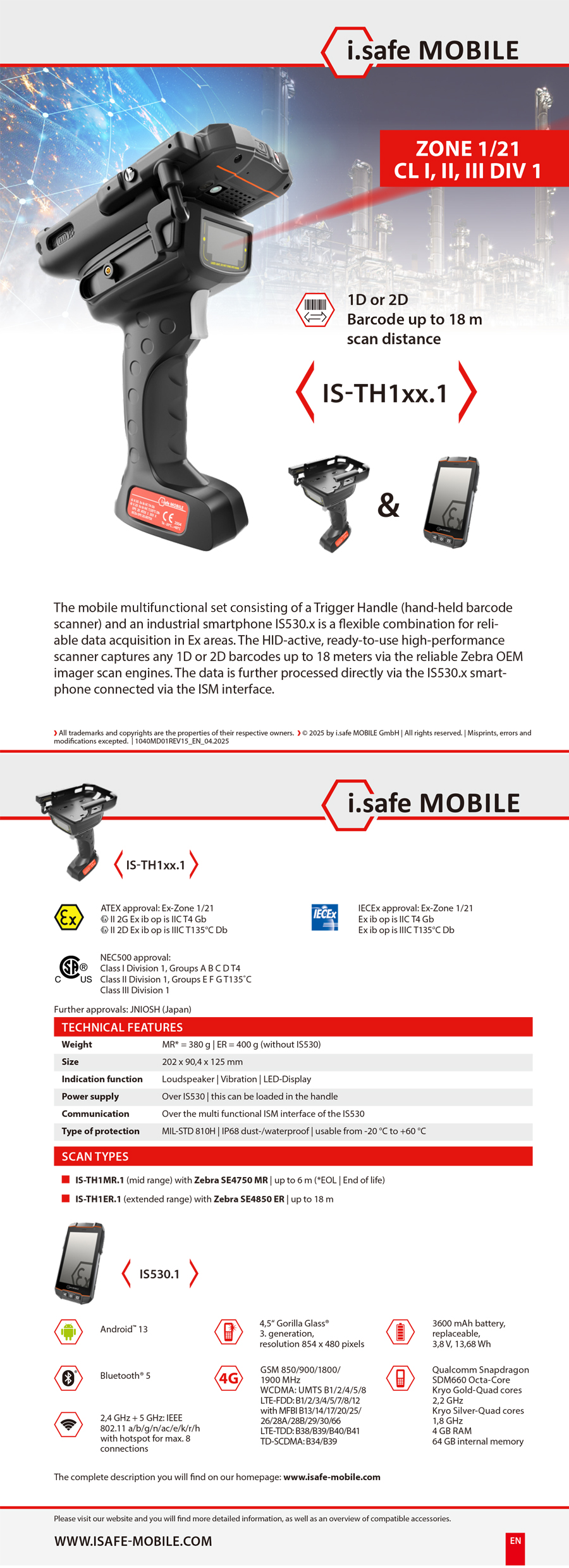 Æ®¸®°Å ÇÚµé(ÇÚµåÇïµå ¹ÙÄÚµå ½ºÄ³³Ê)°ú »ê¾÷¿ë ½º¸¶Æ®Æù IS530.x·Î ±¸¼ºµÈ ¸ð¹ÙÀÏ ´Ù±â´É ¼¼Æ®´Â »ê¾÷ ÇöÀå¿¡¼­ ¾ÈÁ¤ÀûÀÎ µ¥ÀÌÅÍ ¼öÁýÀ» À§ÇÑ À¯¿¬ÇÑ Á¶ÇÕÀÔ´Ï´Ù. HID ¾×Ƽºê ¹æ½ÄÀÇ Áï½Ã »ç¿ë °¡´ÉÇÑ °í¼º´É ½ºÄ³³Ê´Â ¾ÈÁ¤ÀûÀÎ 1D ¶Ç´Â 2D ¹ÙÄڵ带 ÃÖ´ë 18m±îÁö ĸóÇÕ´Ï´Ù.Zebra OEM À̹ÌÁö ½ºÄµ ¿£Áøµ¥ÀÌÅÍ´Â ISM ÀÎÅÍÆäÀ̽º¸¦ ÅëÇØ ¿¬°áµÈ IS530.x ½º¸¶Æ®ÆùÀ» ÅëÇØ Á÷Á¢ 󸮵˴ϴÙ.
