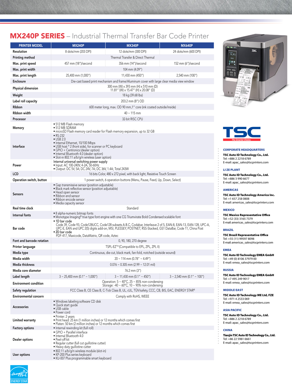 MX240P   |   TSC Industrial Printer